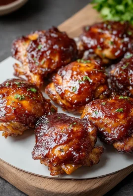 Let’s start by getting our chicken ready for its delicious transformation. First, trim any excess fat from the boneless, skinless chicken breasts. We want clean, uniform pieces for even cooking. Cut the chicken breasts into roughly 1-inch cubes. This size is perfect for threading onto the skewers and ensures they cook through quickly without drying out. In a medium bowl, toss the chicken cubes with 3 tablespoons of avocado oil and 1 teaspoon of kosher salt. The avocado oil will help the seasoning adhere and give the chicken a nice sear. Now, it’s time to get saucy! Reserve 1/2 cup of the BBQ sauce for later. Add the remaining 1.5 cups of BBQ sauce to the chicken and toss to coat each piece thoroughly. Let this marinate for at least 15-30 minutes at room temperature, or for a deeper flavor, you can refrigerate it for up to a few hours. Remember those pre-soaked wooden skewers? They’re crucial to prevent the skewers from burning on the grill or in the oven. If you forgot to soak them beforehand, simply place them in a bowl of water for at least 30 minutes.