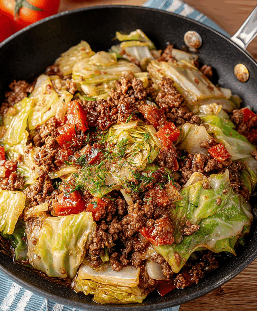 A hearty and comforting dish featuring ground beef, cabbage, rice, and tomatoes simmered in a flavorful broth. Perfect for a cozy weeknight meal!