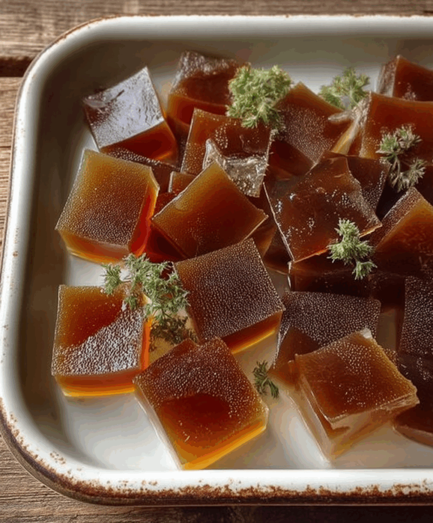 - Pour the Broth into Molds: Carefully pour the reduced broth into the prepared molds, filling them to the top. If using a baking sheet, spread the broth evenly to a thickness of about 1/4 to 1/2 inch.
