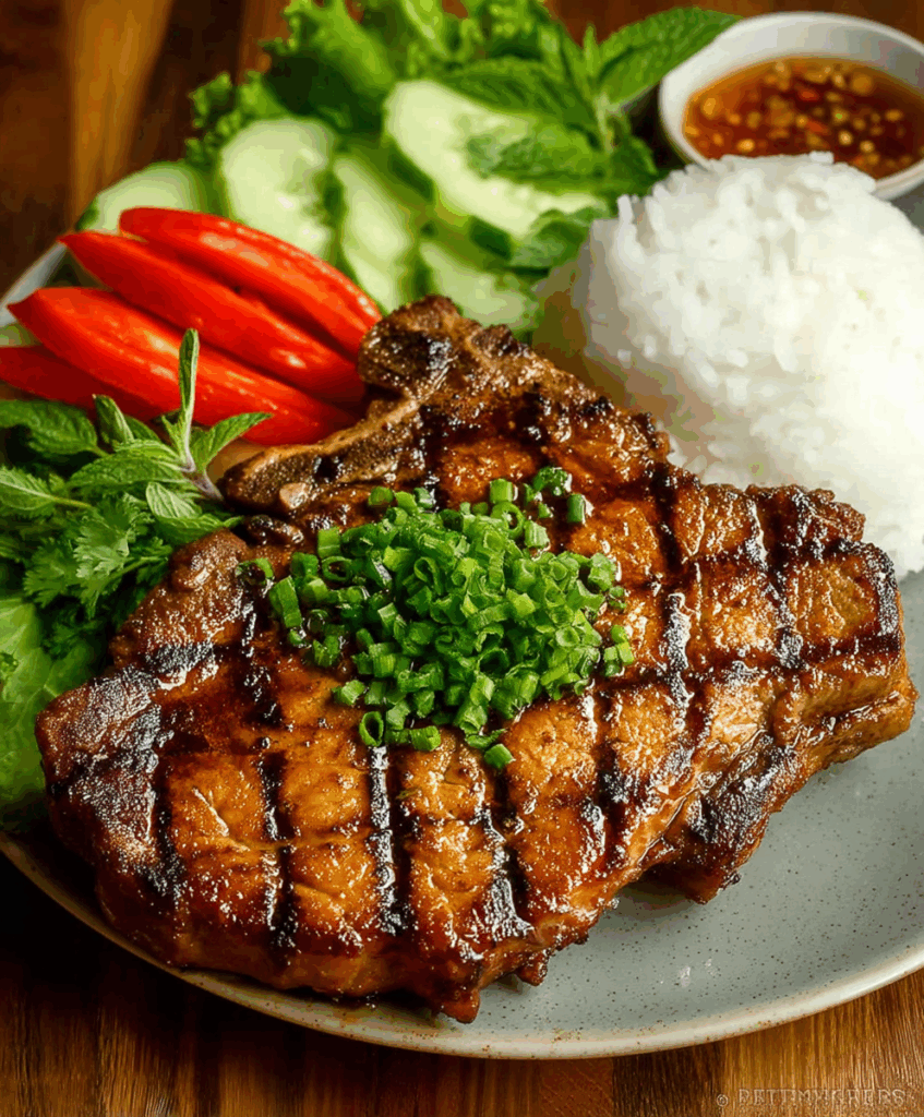 - Classic Vietnamese Meal: Serve the pork chops with steamed jasmine rice, a side of pickled carrots and daikon (Do Chua), sliced cucumbers, and a generous drizzle of Nuoc Cham dipping sauce. Garnish with fresh cilantro and mint.