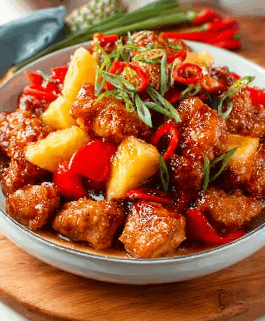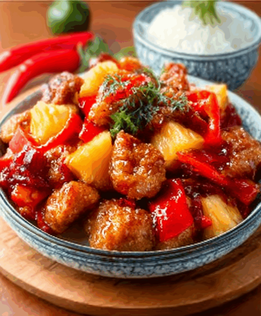 Crispy fried chicken in vibrant homemade sweet and sour sauce with bell peppers, onions, and pineapple. Easy takeout favorite!